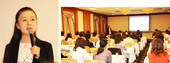 「女性リーダーとして大切にしてきたこと~お客様と仲間の笑顔を最高の歓びに~」をテーマに、全日本空輸で初の女性取締役専務執行役員として活躍されている河本宏子氏(現ANA総合研究所 副社長)にご自身のこれまでの軌跡を率直に語っていただきました。河本氏の親しみやすい人柄と様々な体験を通してのリアルなお話に聴衆は大いに学び、力づけられた様子です。今後のリーダーとしての在り方や、キャリアについて考えさせられる大変有意義なセミナーとなりました。